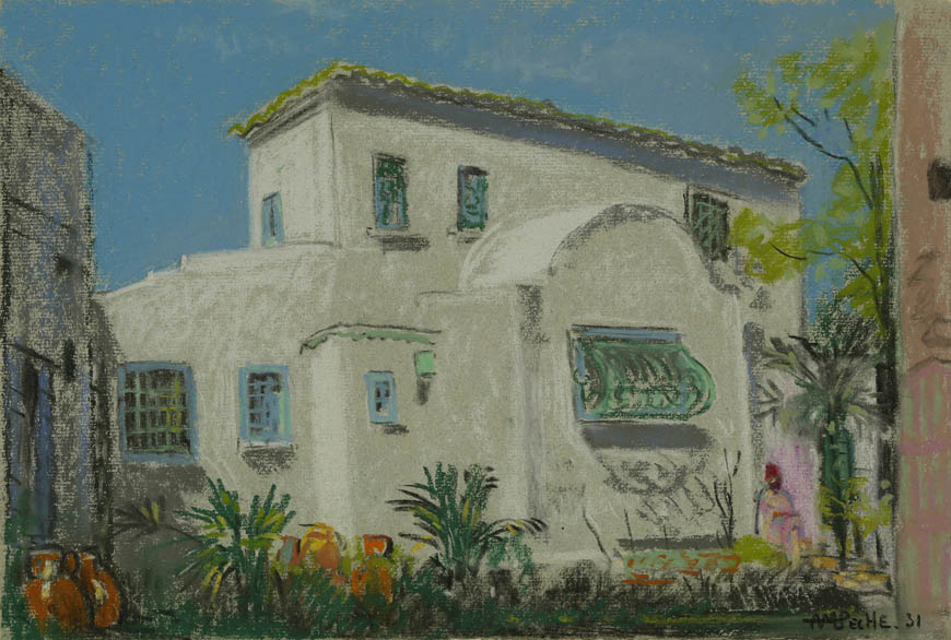 Alexandre-Mathurin Pêche dépeint remarquablement les ambiances exotiques créées par les architectures coloniales, les figurants en costumes traditionnels et les dromadaires présents à l'exposition.